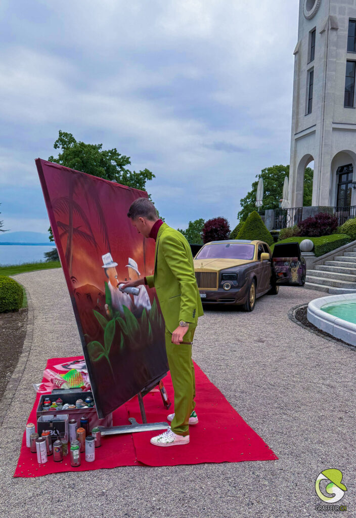 Les invités ont eu l’opportunité de découvrir le processus créatif d’un street artiste suisse en pleine action, observant chaque étape de la réalisation sur un thème aussi élégant qu’emblématique. Cette prestation interactive a non seulement apporté une touche artistique dynamique à l’événement, mais a également laissé une œuvre mémorable dans l’esprit des participants.