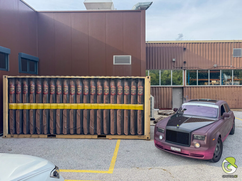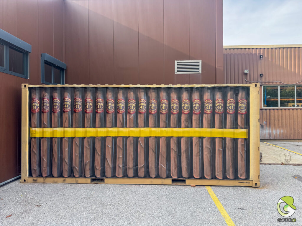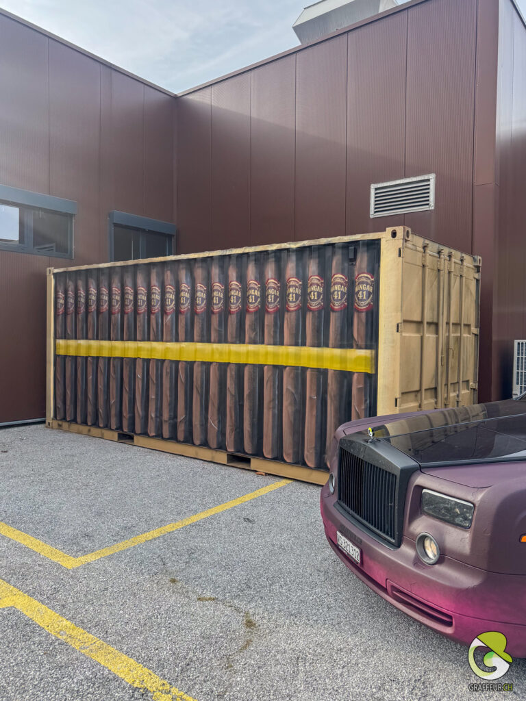 Réaliser un trompe-l’œil réaliste au spray est toujours un défi… mais aussi un vrai plaisir. À Sion, en Valais, j’ai eu l’opportunité de transformer un container maritime en une gigantesque boîte à cigares pour le bar-restaurant et bar à cigares Hangar 41.