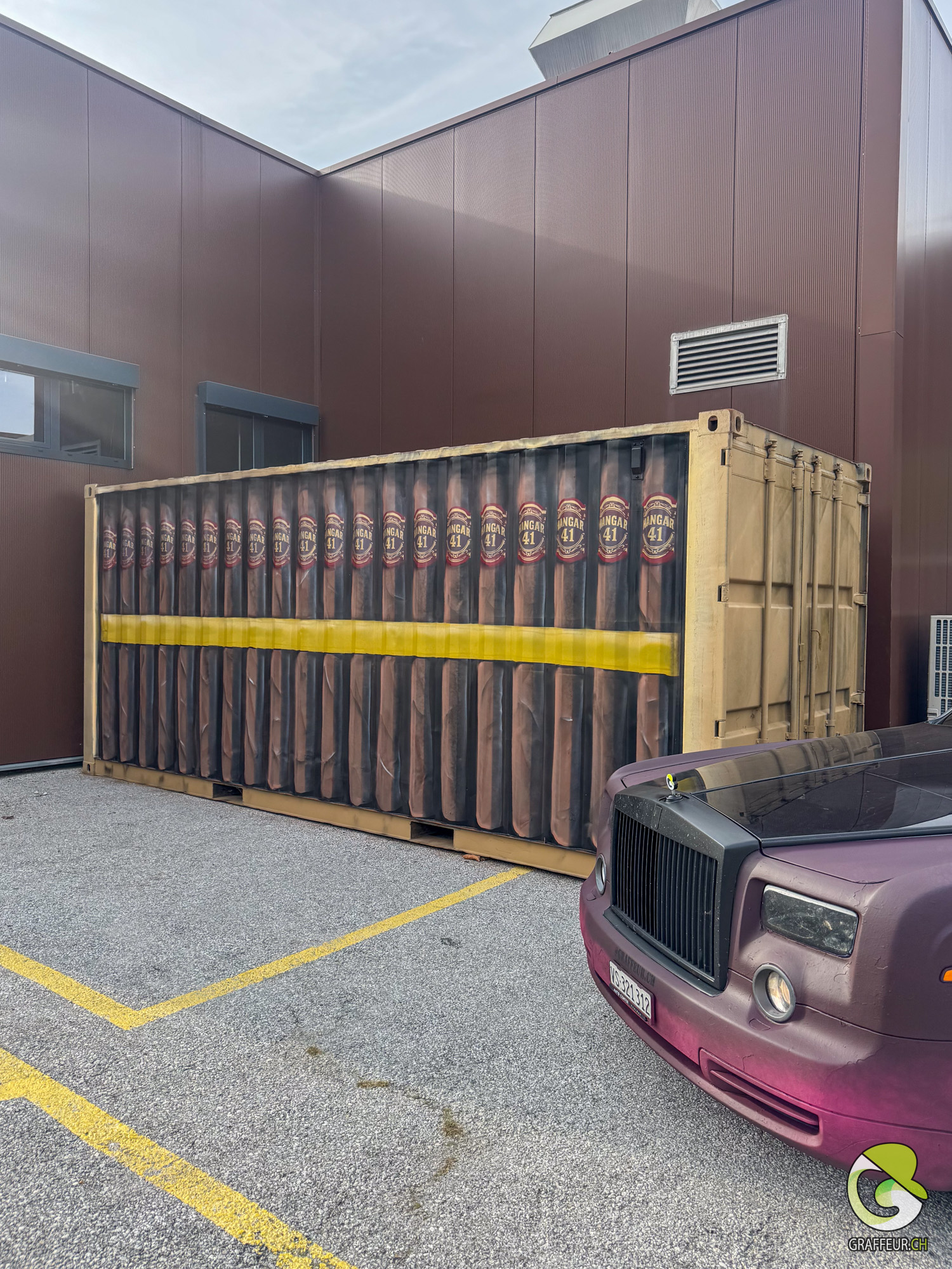 L’idée : donner vie à l’univers raffiné du cigare directement sur ce container, en jouant avec les volumes et la perspective. Le résultat est un trompe-l’œil hyperréaliste représentant une rangée de cigares soigneusement alignés.