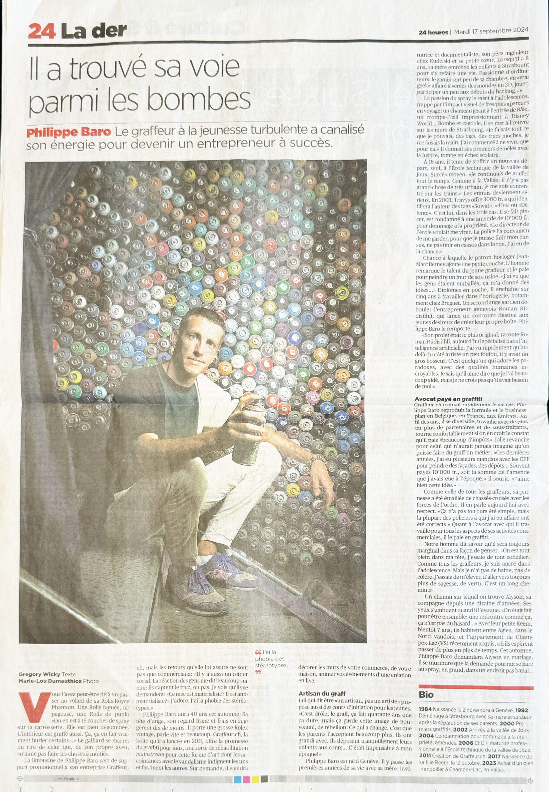 17 septembre 2024 : 24heures – La der – Portrait – Article de Gregory Wicky – PDF